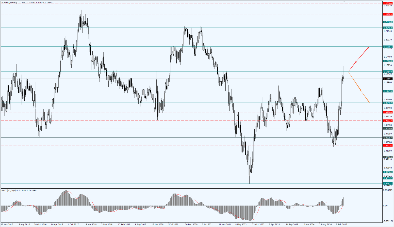 - 지난주 유로/달러는 상승 후 하락하며 “긴 상향 그림자”가 형성되었습니다. 이는 위쪽의 매도 압력이 강하다는 것을 의미합니다. 유로/달러는 이번 주에 중요한 결정을 내려야 할 상황입니다. 만약 강세를 보인다면 지난주 “긴 상향 그림자” 부분을 소화하며 매도세를 압도하고 추가 상승의 기조를 확립할 수 있습니다. 그렇지 않으면 유로/달러는 적어도 기술적인 조정을 겪을 가능성이 큽니다.
