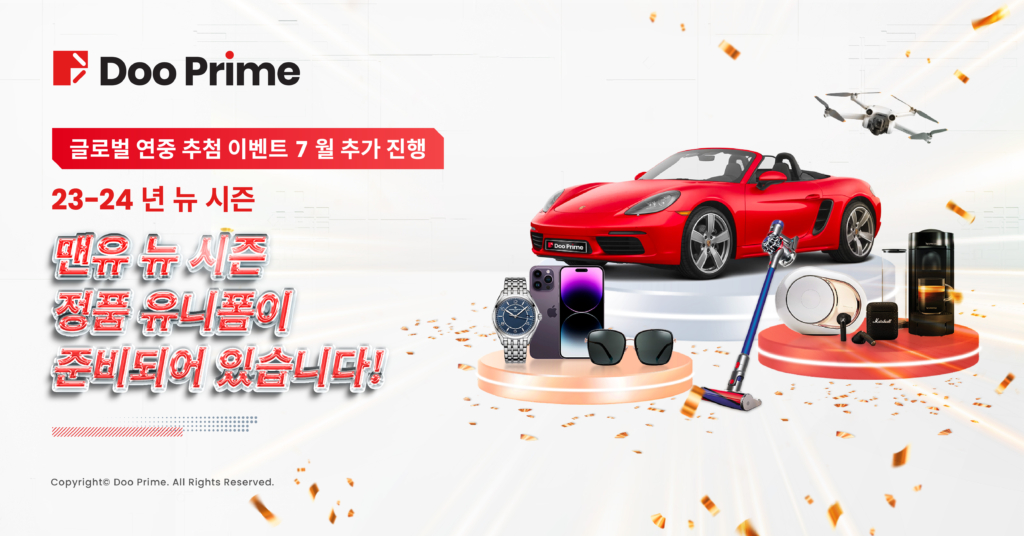많은 투자자님들과 함께 아름다운 7월을 맞이하기 위해, Doo Prime은 오늘부터 더 많은 상품을 준비할 예정입니다! 그중 PS5 게임기 및 다양한 프리미엄 선물도 포함되어 있습니다!