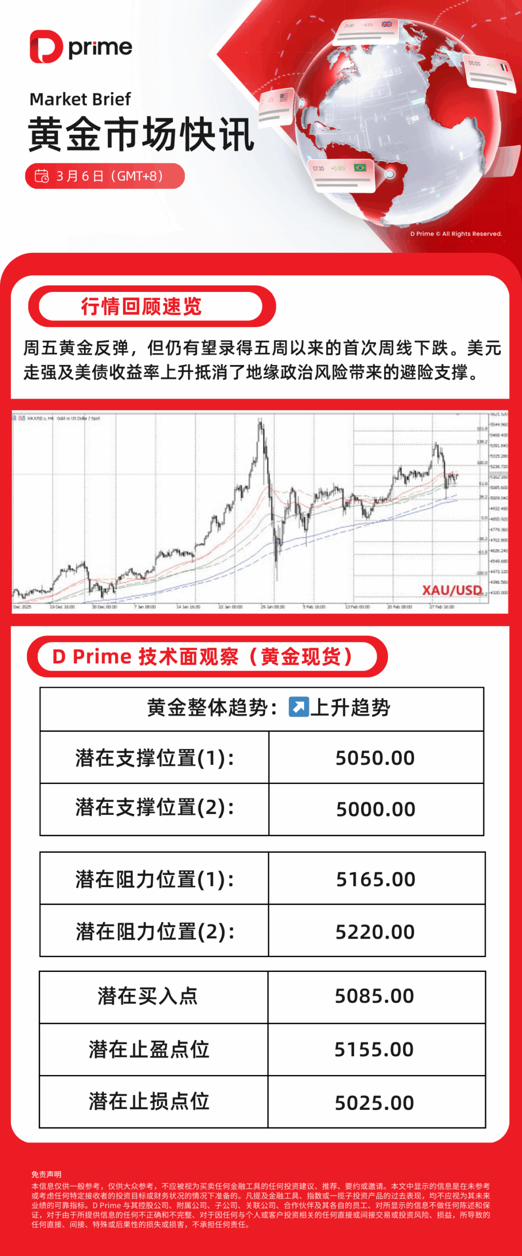 D Prime 黄金市场快讯 | 2026 年 3 月 6 日