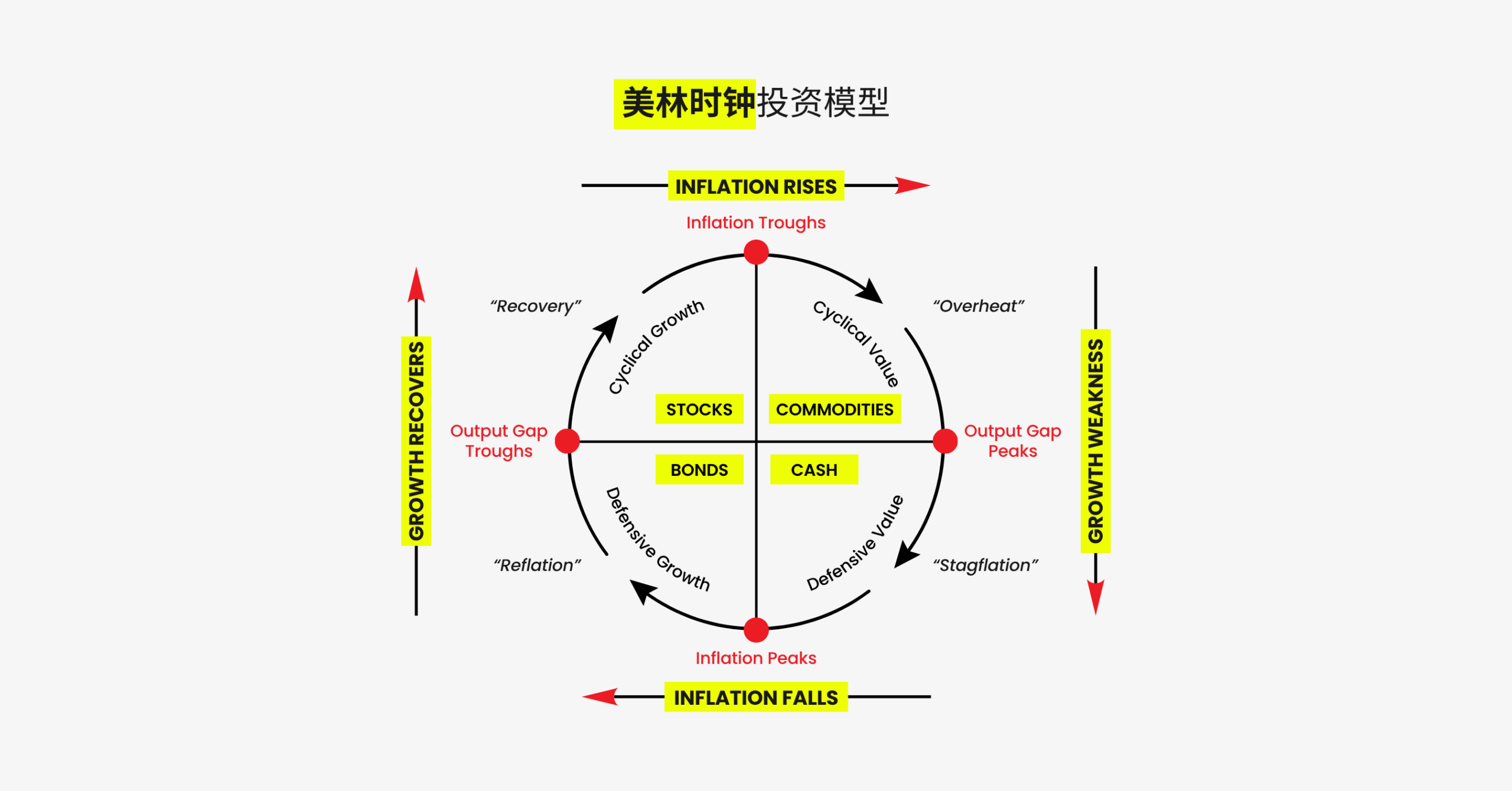 根据美林时钟,当滞胀来临时,似乎没有什么资产值得持有,最好就是持有现金,等待经济回升。