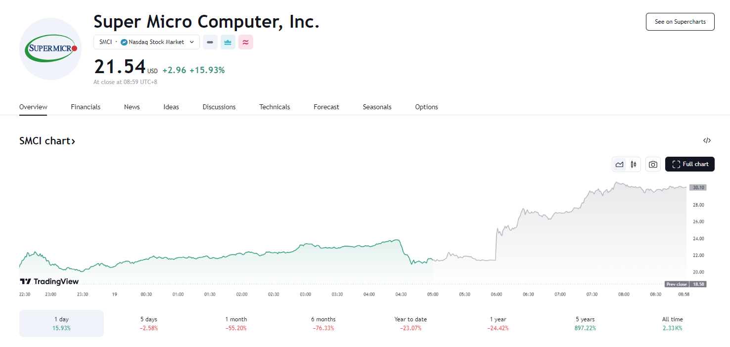 超微电脑聘请新审计师,股价盘后狂飙 40%