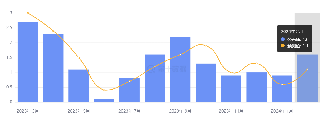 美国劳工部数据显示,2 月 PPI 超预期升温,同比上涨 1.6%,前值为 1.2%,远超预期的 1.1%;PPI 环比加速涨 0.6%,是预期值的两倍,前值 0.3%。