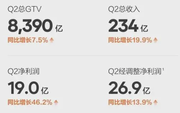 • 净收入 234 亿元,同比增长 19.9%,总交易额由 7806 亿元增长 7.5% 至 8390 亿元;