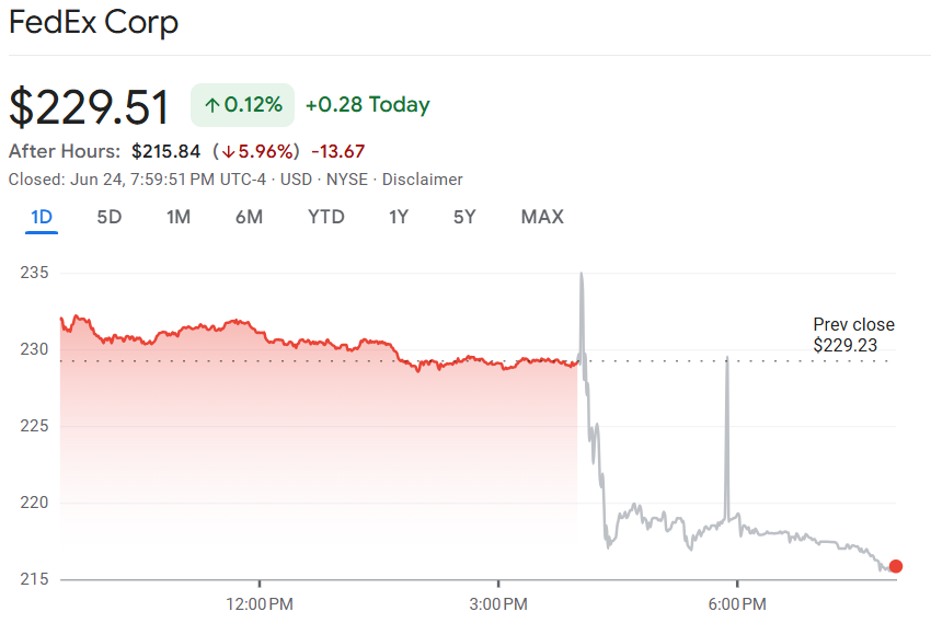 联邦快递(FDX)发布了 2025 财年第四季度财报,业绩优于市场预期。营收达 222.2 亿美元,略高于预期的 217.9 亿美元,季度每股收益(EPS)达到 6.07美元,同样高于预期的 5.84 美元。