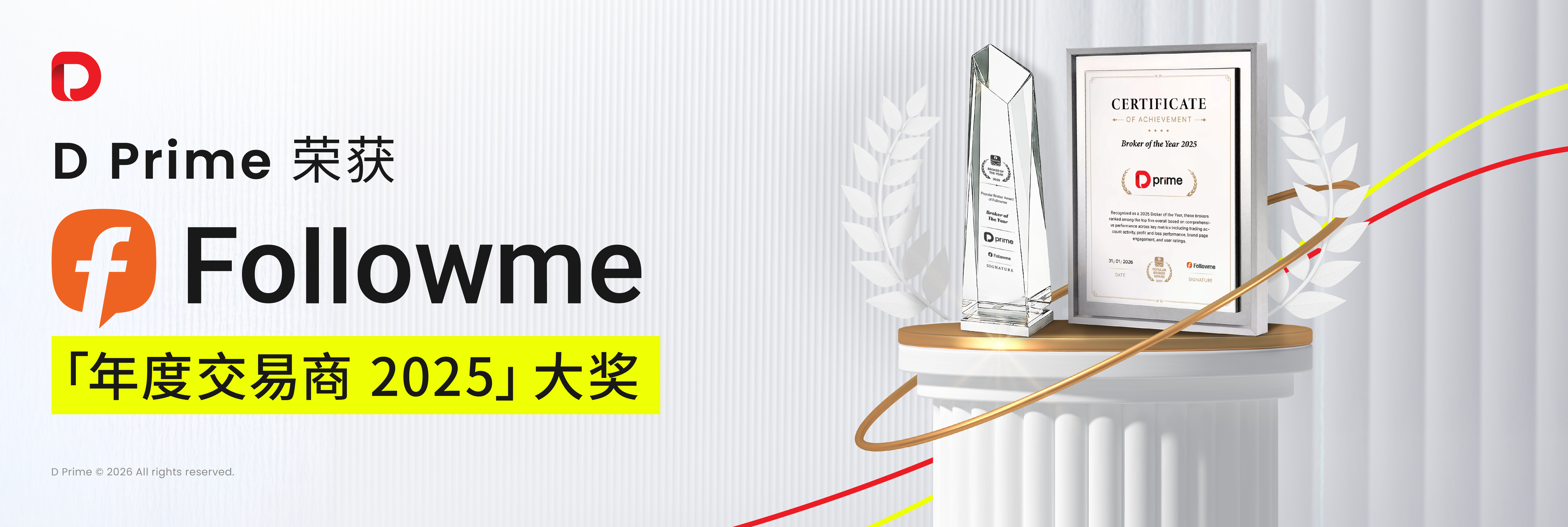 在 Followme 交易社区 2025 年度交易商评选中,D Prime 凭借过去一年在交易账户活跃度、盈亏金额、交易商品牌专页访问量及用户评分等关键维度的优异综合表现,再次从激烈的行业竞争中脱颖而出,成功荣获 “年度交易商” 奖项。