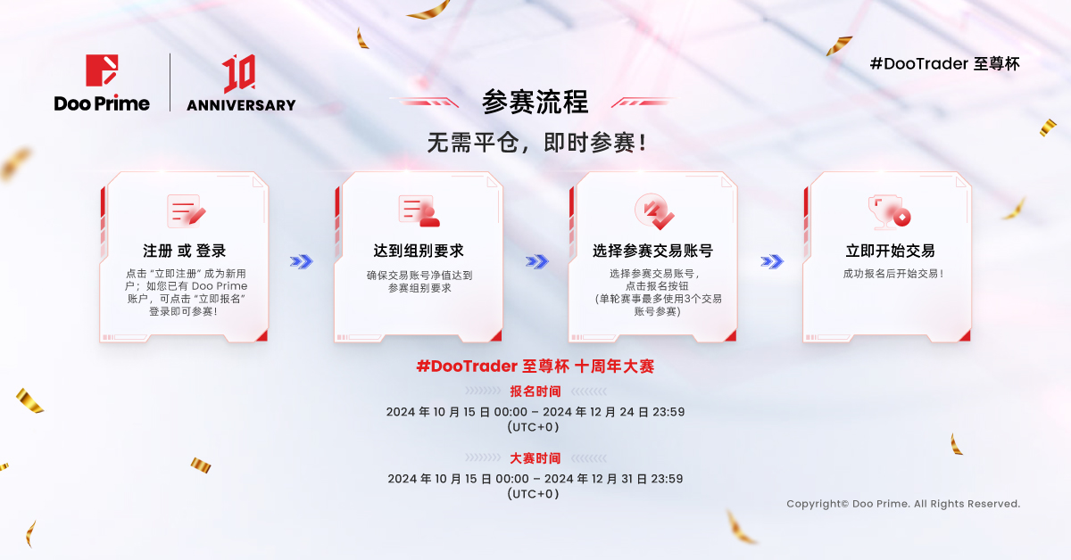 欢迎点击 #DooTrader活动页链接,或联系您的1对1专属客户经理,了解更多 #DooTrader 至尊杯 十周年慈善交易大赛详情。Doo Prime 期待与您携手,共同书写未来的交易传奇!