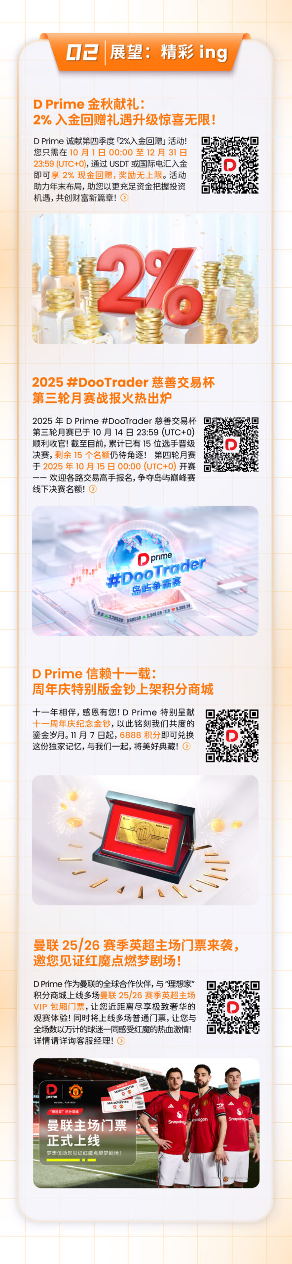 凭借强大的金融科技基础设施、紧密的合作伙伴关系、资深的技术团队,D Prime 始终为投资者提供安全可靠的交易环境、具有竞争力的交易成本、极速的交易执行通道,在 MT5、MT4、TradingView、D Prime InTrade 等多个行业领先的交易终端上提供超过 1 万种交易产品,支持 150 多种不同货币的存取款方式,7*24 小时的多语言客户服务。