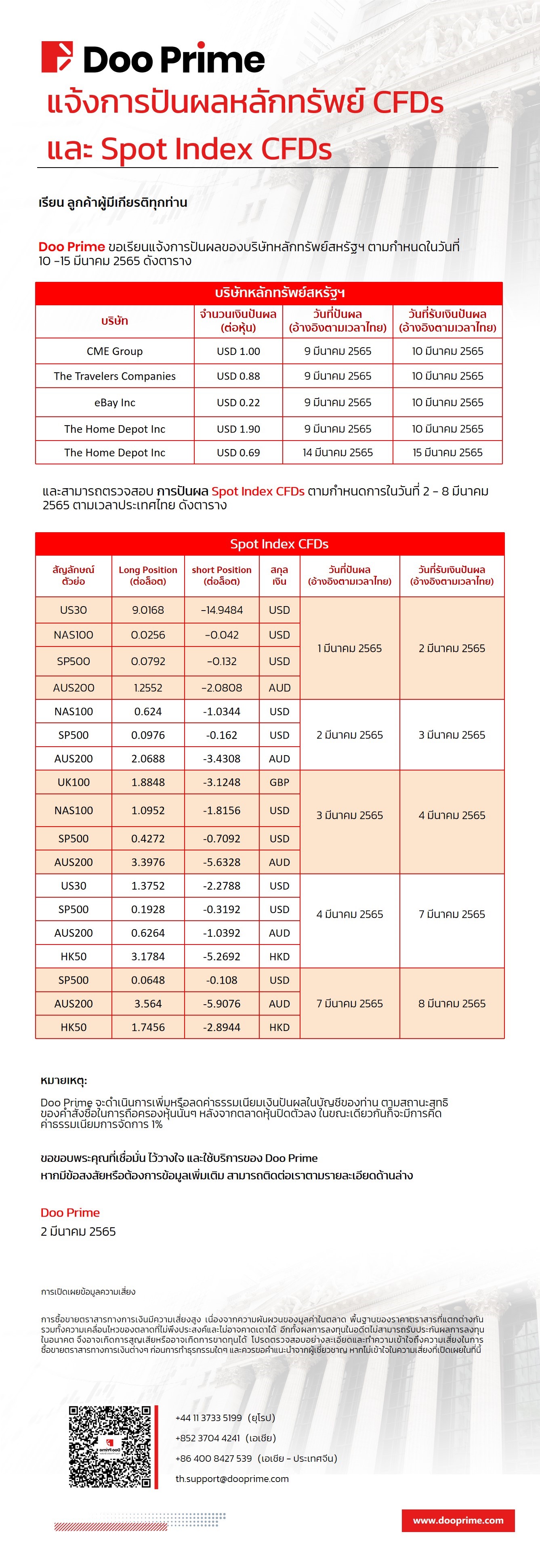 2022-03-02 | CFD , Spot Index , ปันผลหลักทรัพย์