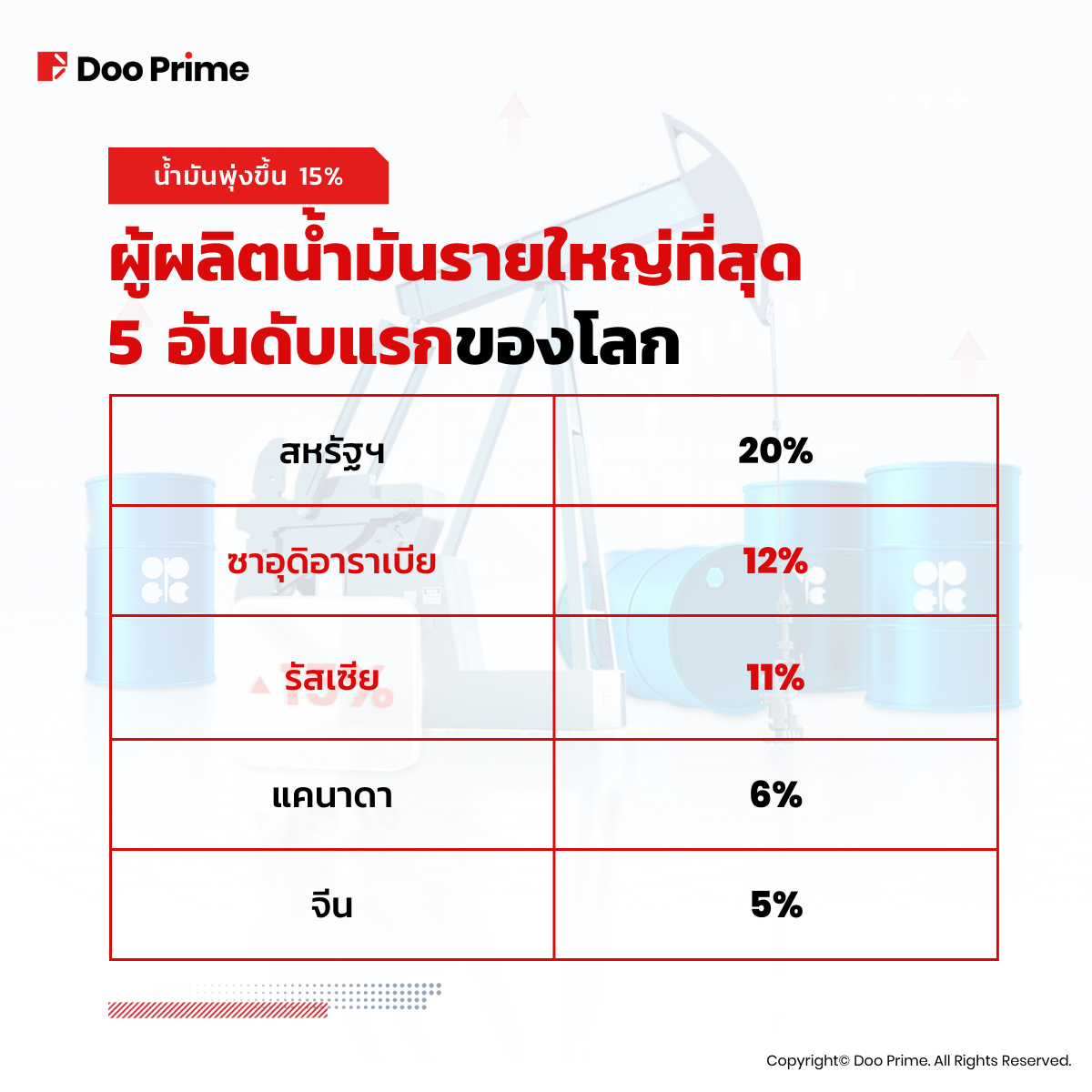 • อย่างไรก็ตาม ราคาน้ำมันอาจลดลงเช่นกันหากอัตราดอกเบี้ยที่สูงขึ้นขัดขวางการเติบโตของเศรษฐกิจโลก หรือหาก OPEC+ ตัดสินใจเพิ่มการผลิตน้ำมัน