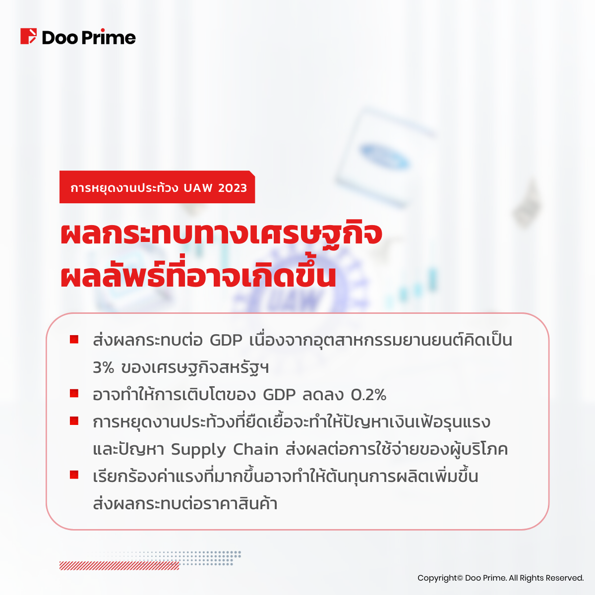 สหภาพแรงงานยานยนต์สหรัฐ (UAW) หยุดงานประท้วง ผลกระทบทางเศรษฐกิจ และตลาด Ford, GM และ Stellantis