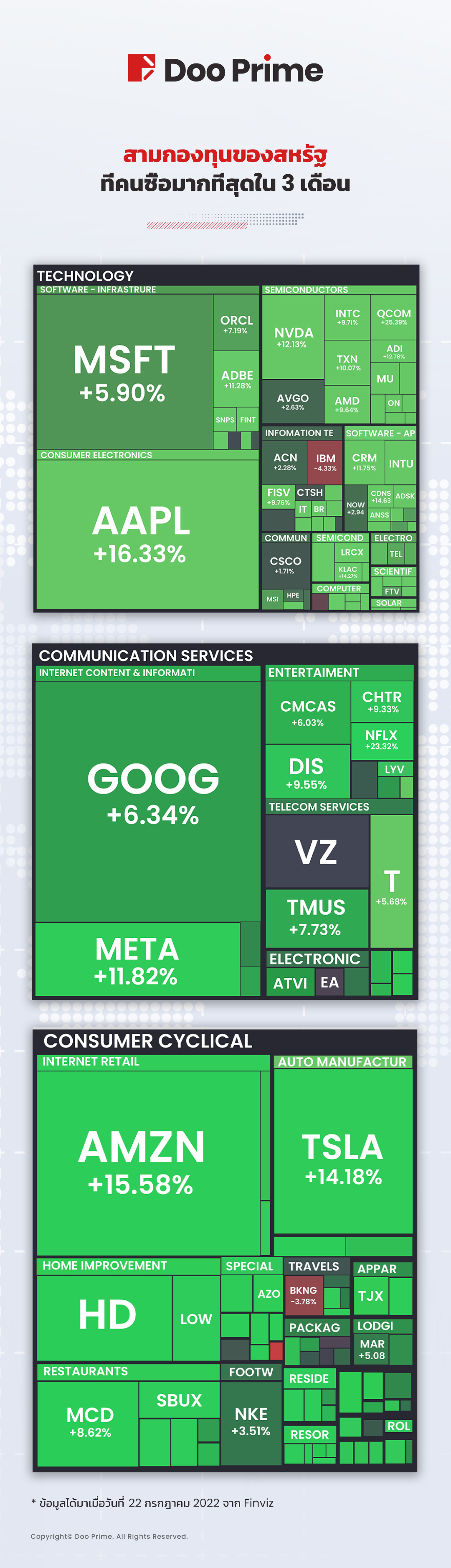 รูปด้านบนเป็นภาพทางการเงิน CFD ของหุ้นสหรัฐที่ซื้อขายมากที่สุดภายใน 3 เดือนล่าสุด ข้อมูลได้รับเมื่อวันที่ 22 กรกฎาคม 2022 จาก Finviz