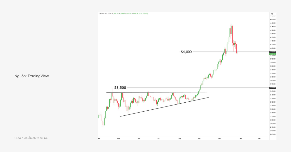 Về mặt kỹ thuật, vàng gần đây đã chạm tới đỉnh mọi thời đại là gần 4,300 USD trước khi giảm xuống dưới mức 4,000 USD.