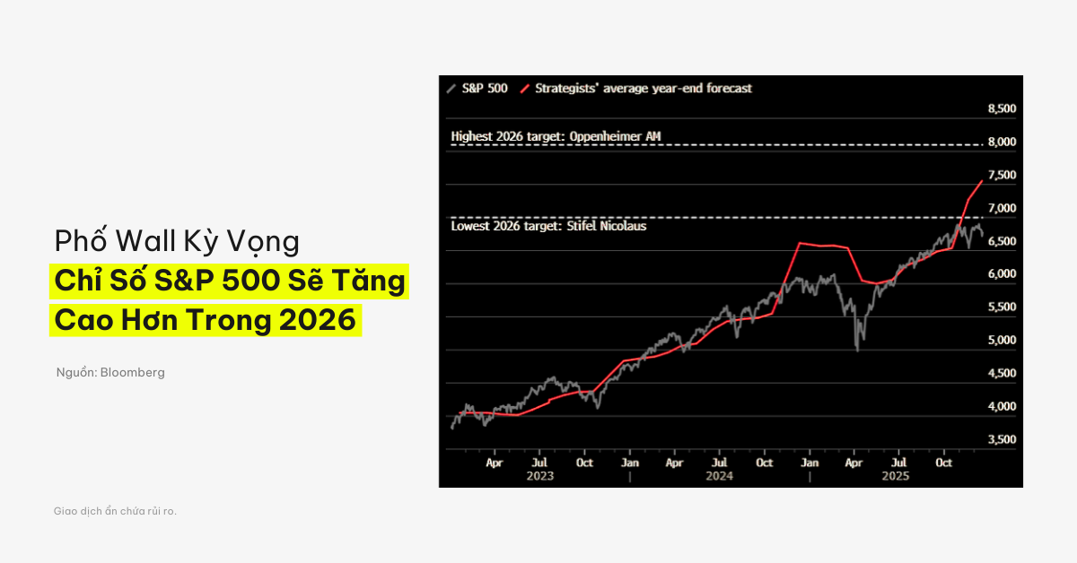 • Mục tiêu cao nhất cho năm 2026: Khoảng 8,000 điểm đối với S&P 500, do Oppenheimer Asset Management dự báo.